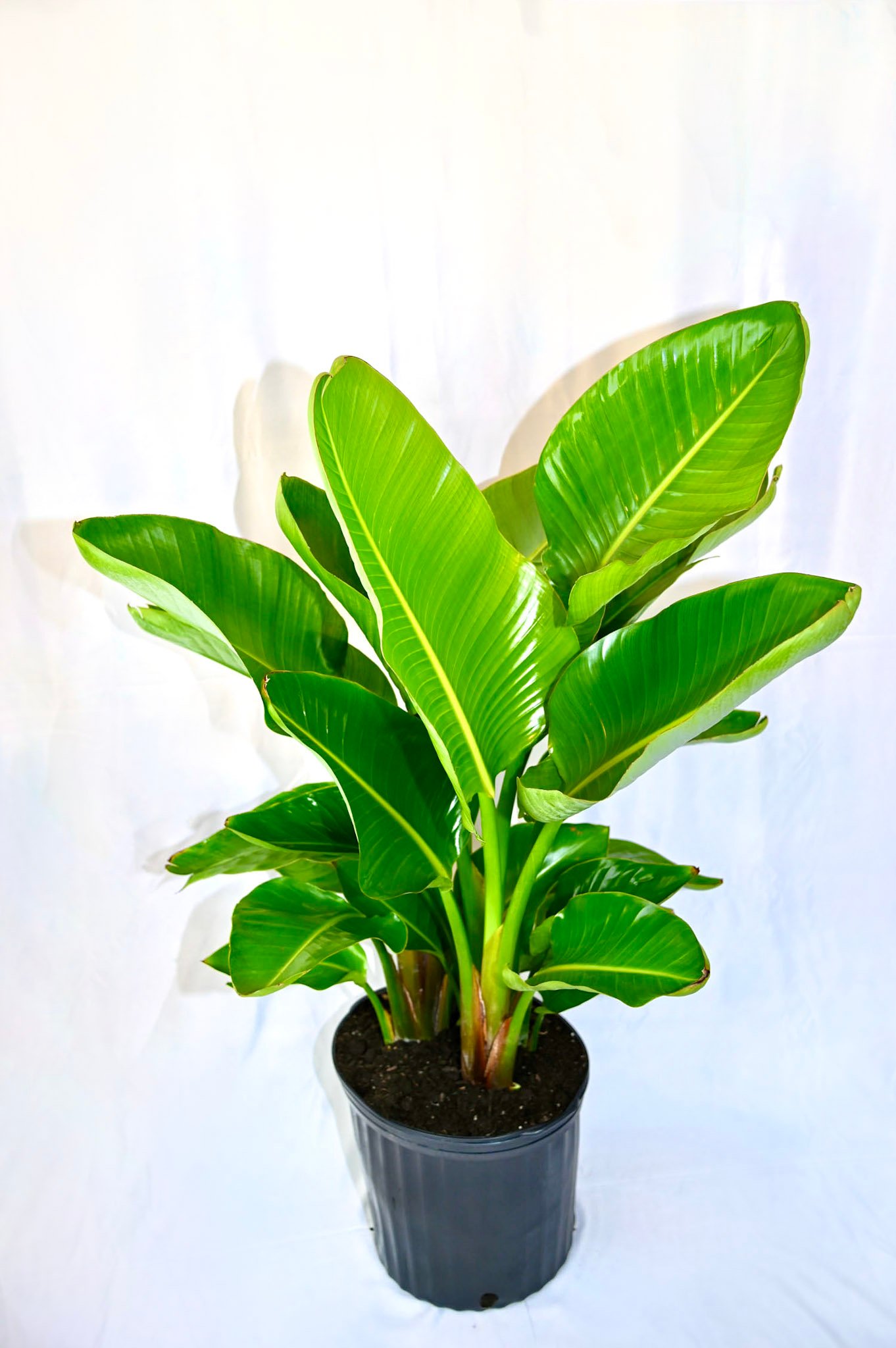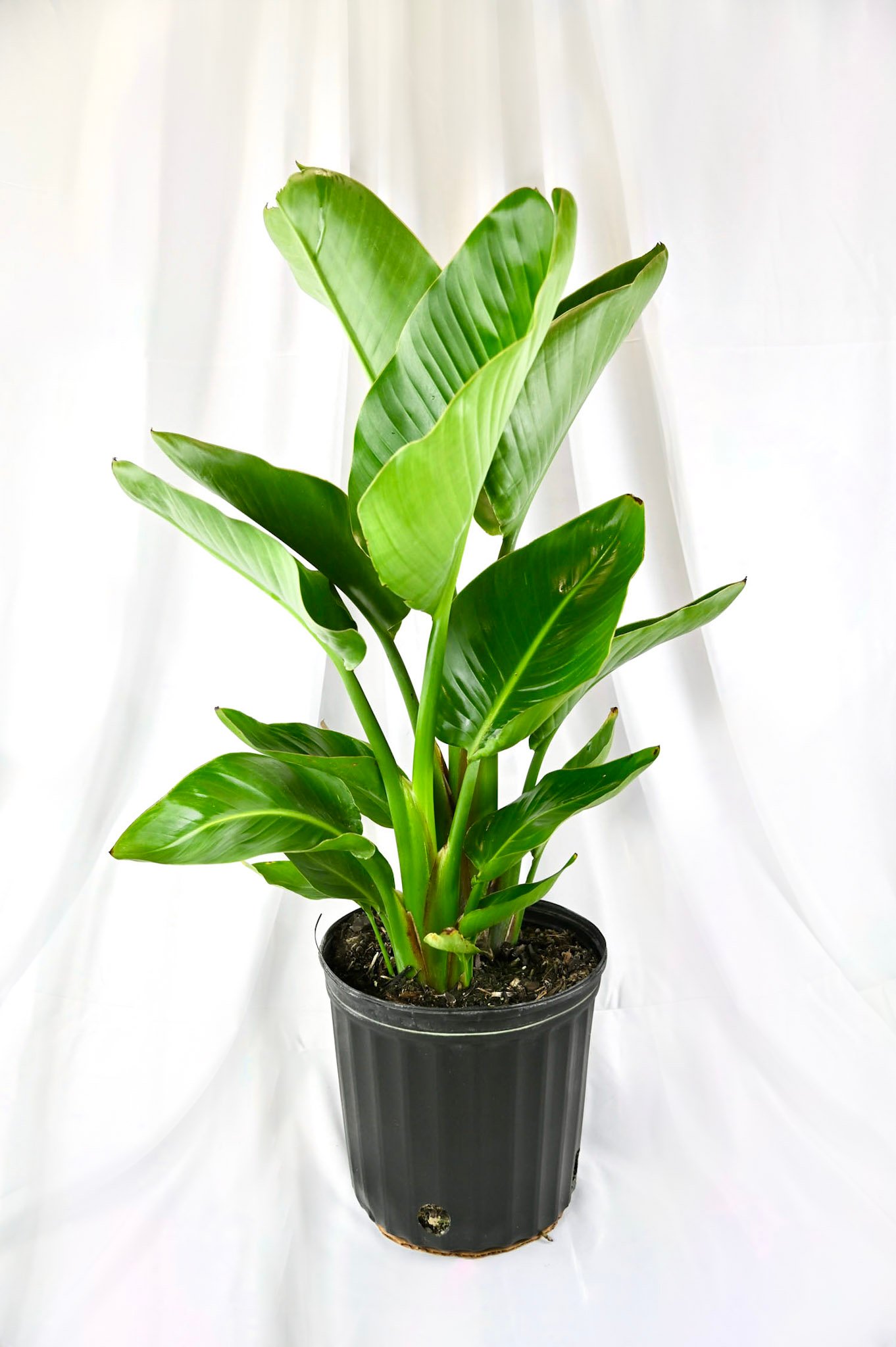 Tropical plant with large white flowers and banana-like foliage — great for modern decor.